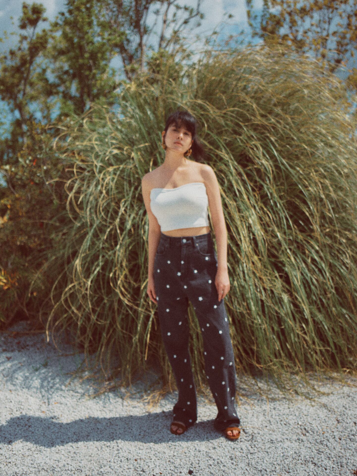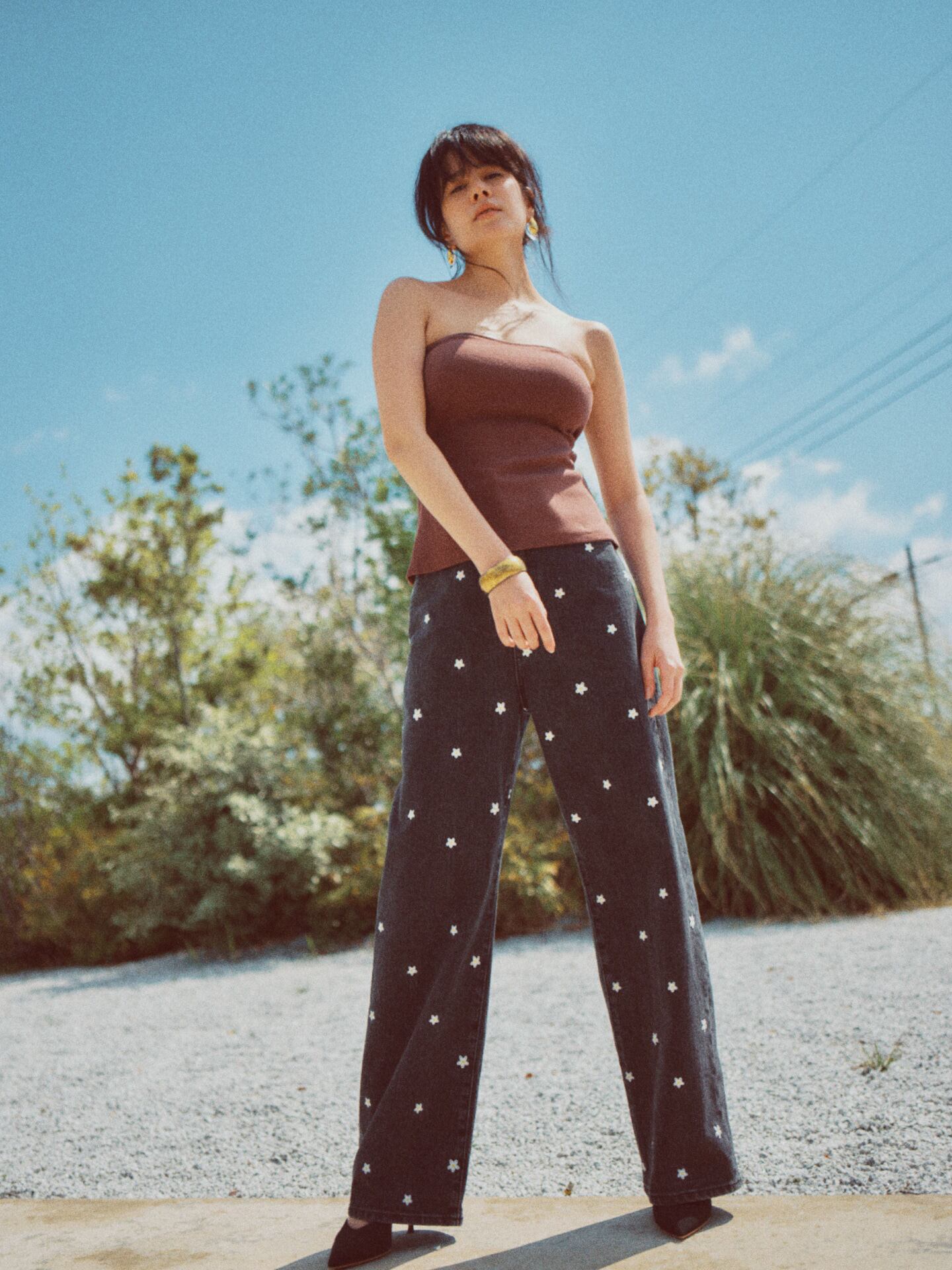 SOLD OUT 散りばめられた手刺繍風のデイジーに、思わず「かわいい!」と声を上げたくなるTNH DAISY MARTIN JEAN。程よい厚みを持つ12.5オンスのデニム地は、ストレッチが効いて快適なはき心地。あえてはき込んだような加工を施しさらに柔らかく、こなれた印象にしています。フィットは太めのワイドストレート。ウエストにもゆとりを持たせているので、腰の位置で落としてルーズにはきこなすのも素敵。肌見せコーデや、軽やかなトップスの出番が多いサマーシーズンにぴったりです。カラーはブラックのワンカラー。グレーにも見える絶妙な色合いは、トレンドカラーであるブラウンともマッチ。COOPER BANDEAU TOPをはじめ、COOPERシリーズのようなヘルシーなトップスと合わせれば、旬のバランスがメイクできます。また、デイジーの刺繍が柔らかい印象を与えてくれるので、レザージャケットのようなハードなアイテムとの相性も抜群です。ワードローブに欠かせないデニムだからこそ、アップデートしたくなるもの。私たちの毎日をエナジャイズしてくれるTNH DAISY MARTIN JEANと共に、この夏を楽しんで。