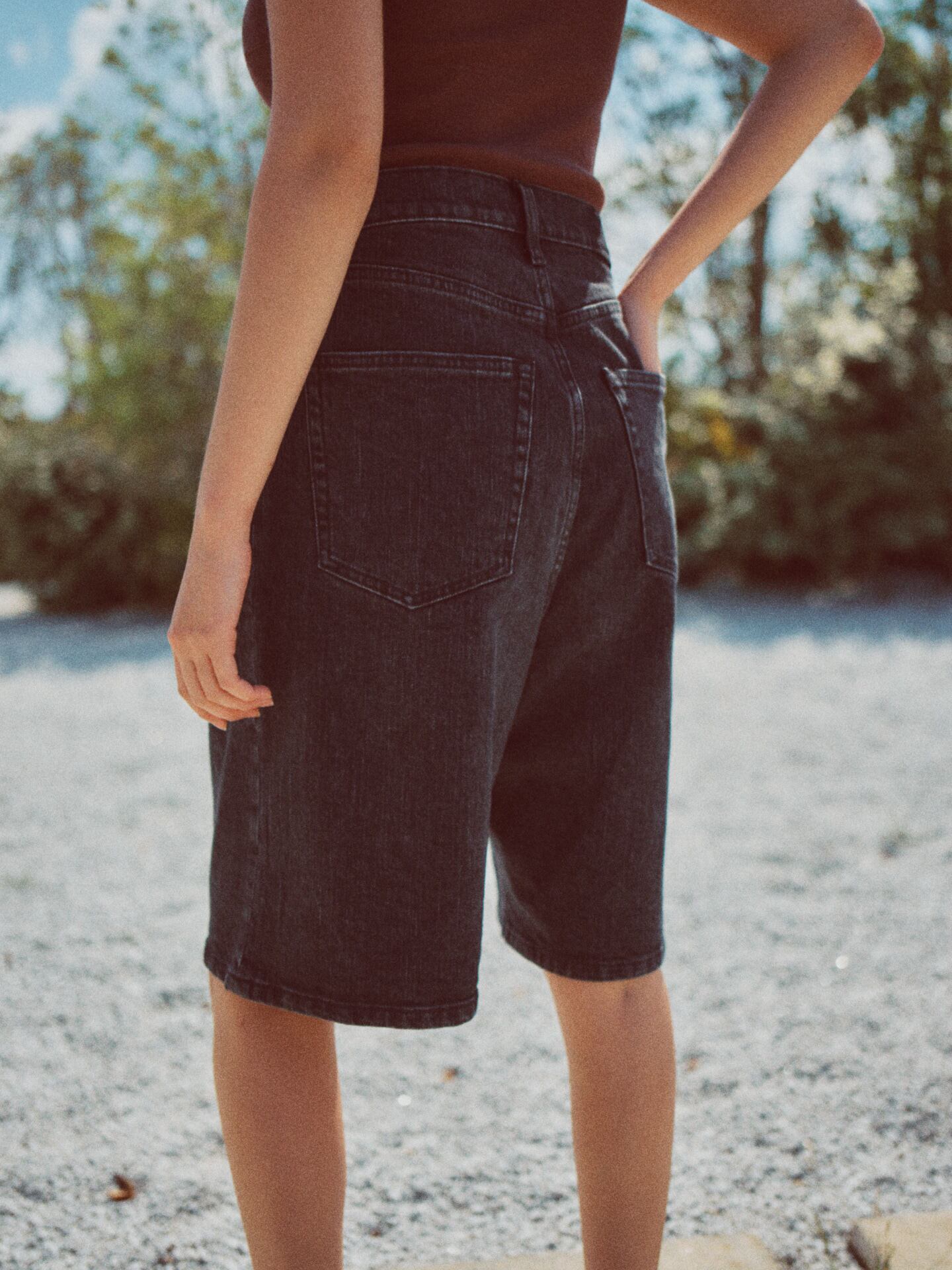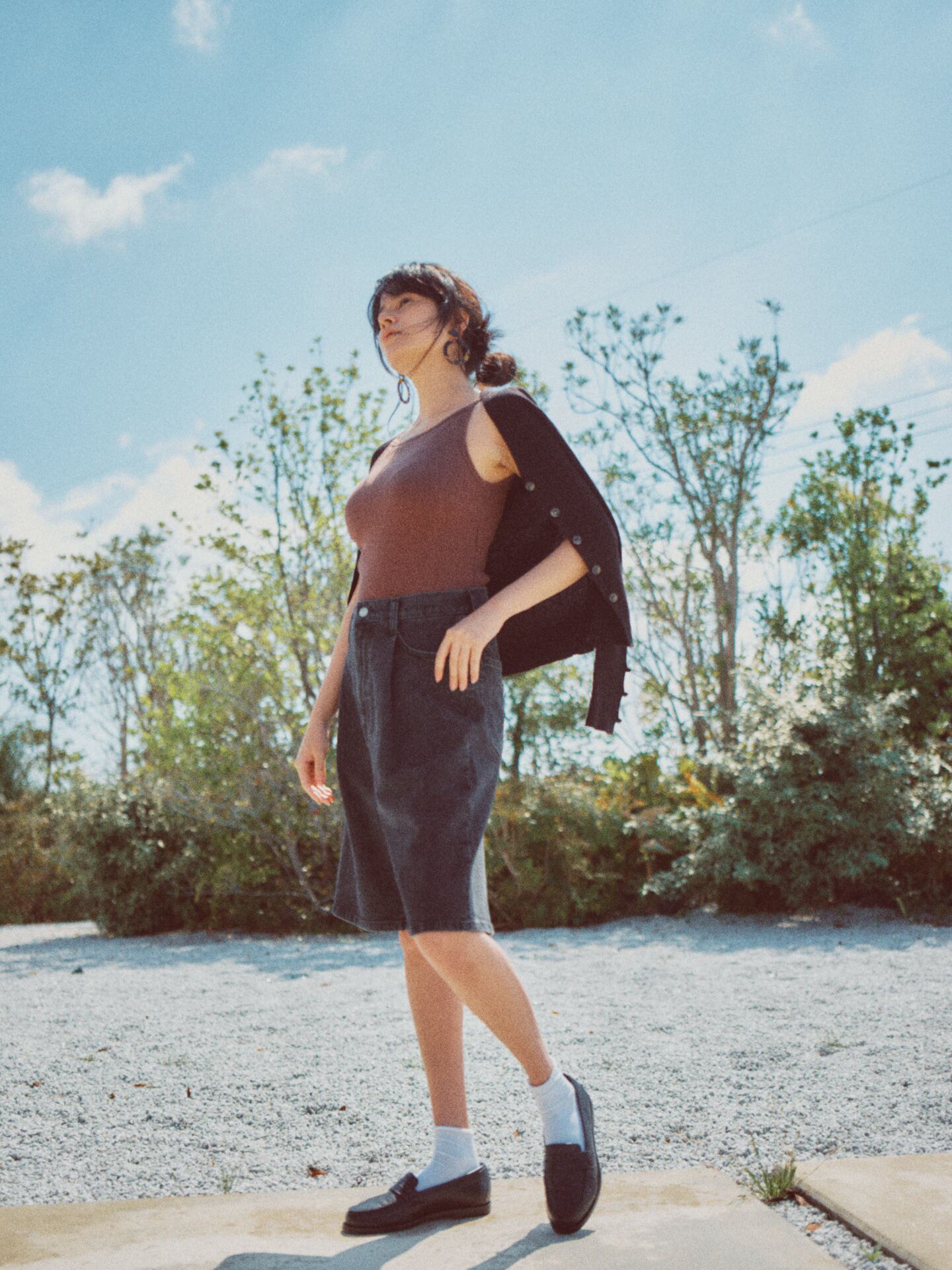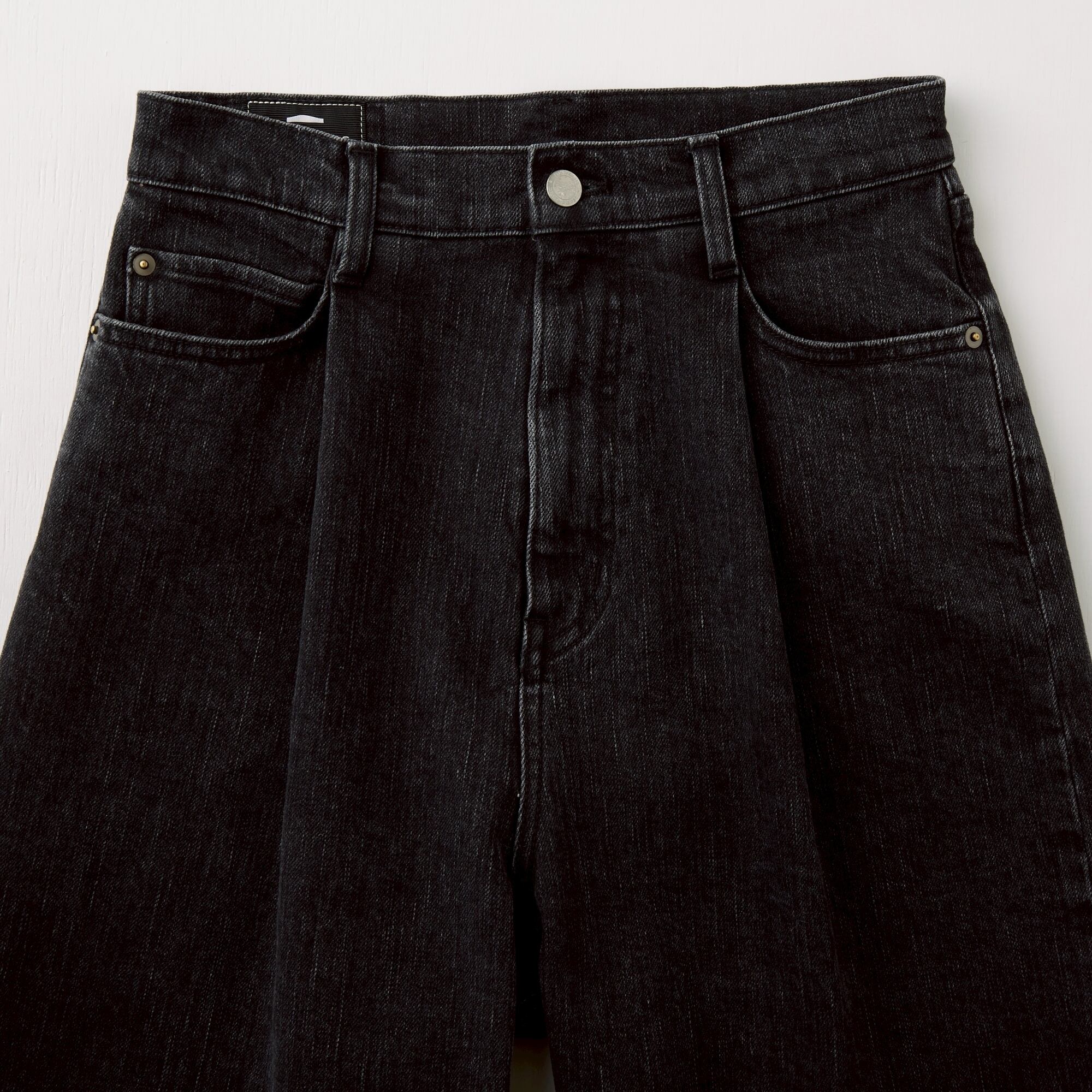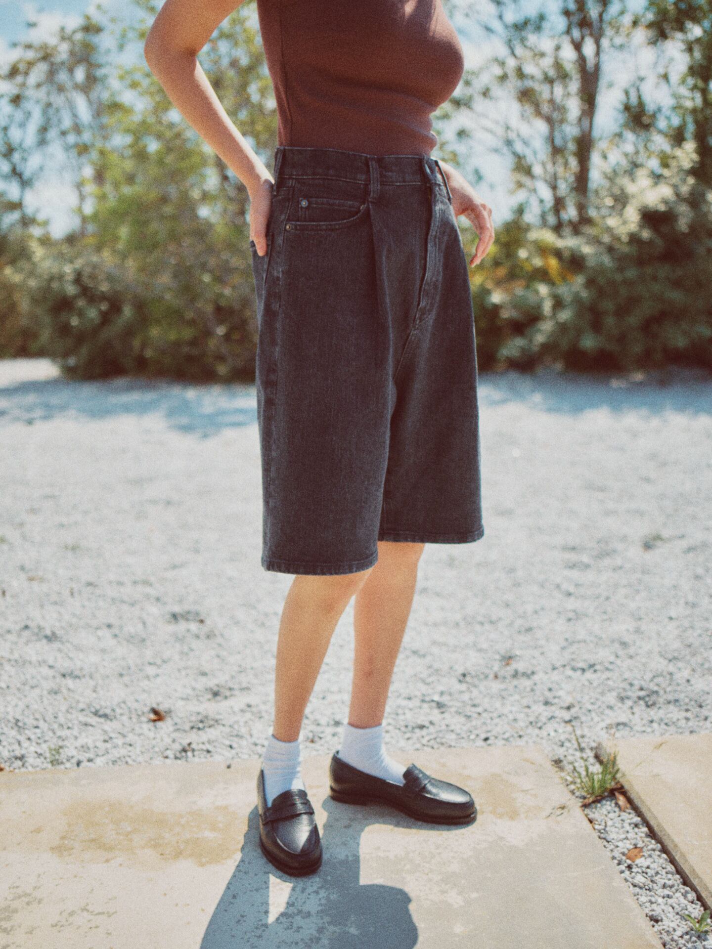 THE NEWHOUSEが自信を持ってお届けするのは、この夏のスタイリングに欠かせないItなデニムショーツ。程よい厚みを持つ12.5オンスのデニム地は、ストレッチが効いて快適なはき心地。あえてはき込んだような加工を施しさらに柔らかく、こなれた印象にしています。ポイントは、デニムパンツの定番である5ポケット型をベースにしながら、前面にプリーツを入れた点。ウエスト部分はきちんとフィットしつつ、フェミニティの香るバギーなシルエットに仕上がっています。ぜひCOOPER BOAT NECKのような夏らしいトップスに合わせて、ヘルシーな肌見せを楽しんで。さらに足元にトレンドのフラットシューズを合わせれば、フレアが際立ちキュートな印象に。ミュールなどのヒールのあるシューズに合わせれば、脚をきれいに見せてくれます。ボーイッシュなだけでは満足できない、大人のためのバギーショーツです。