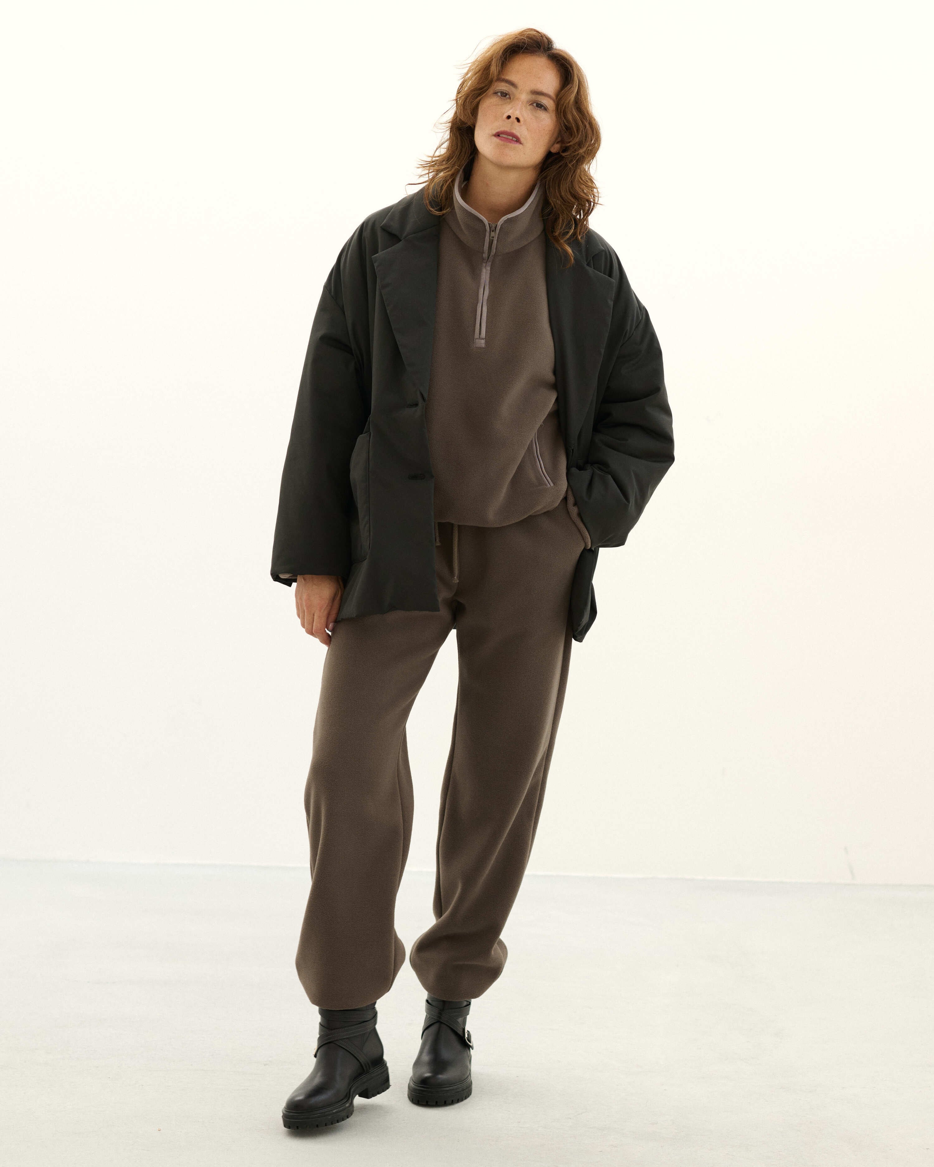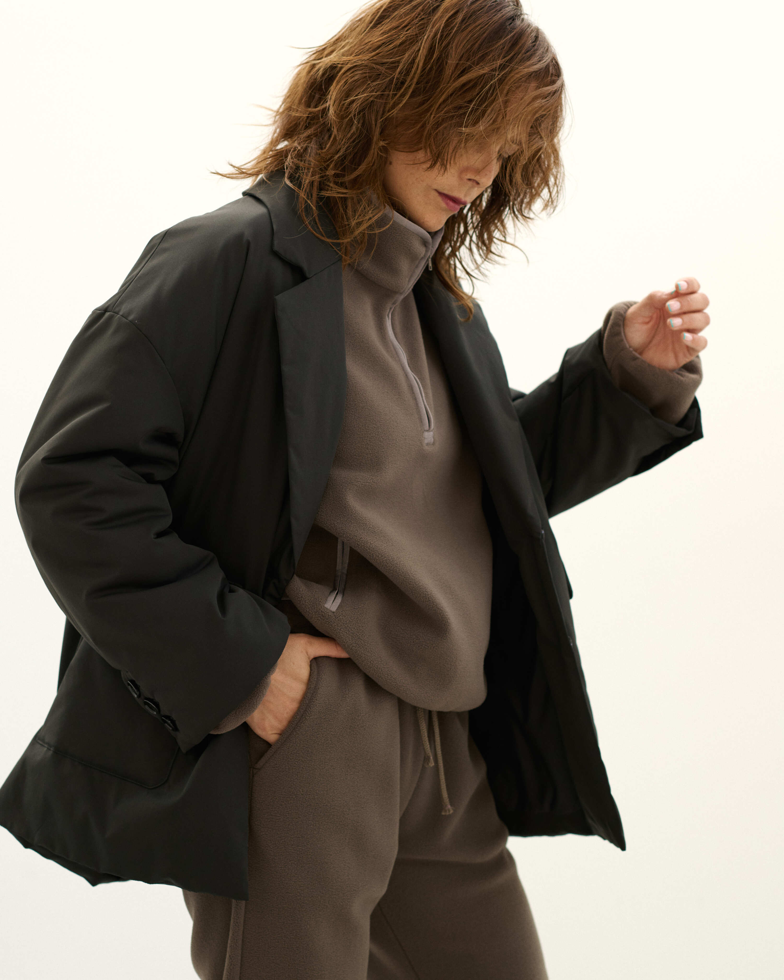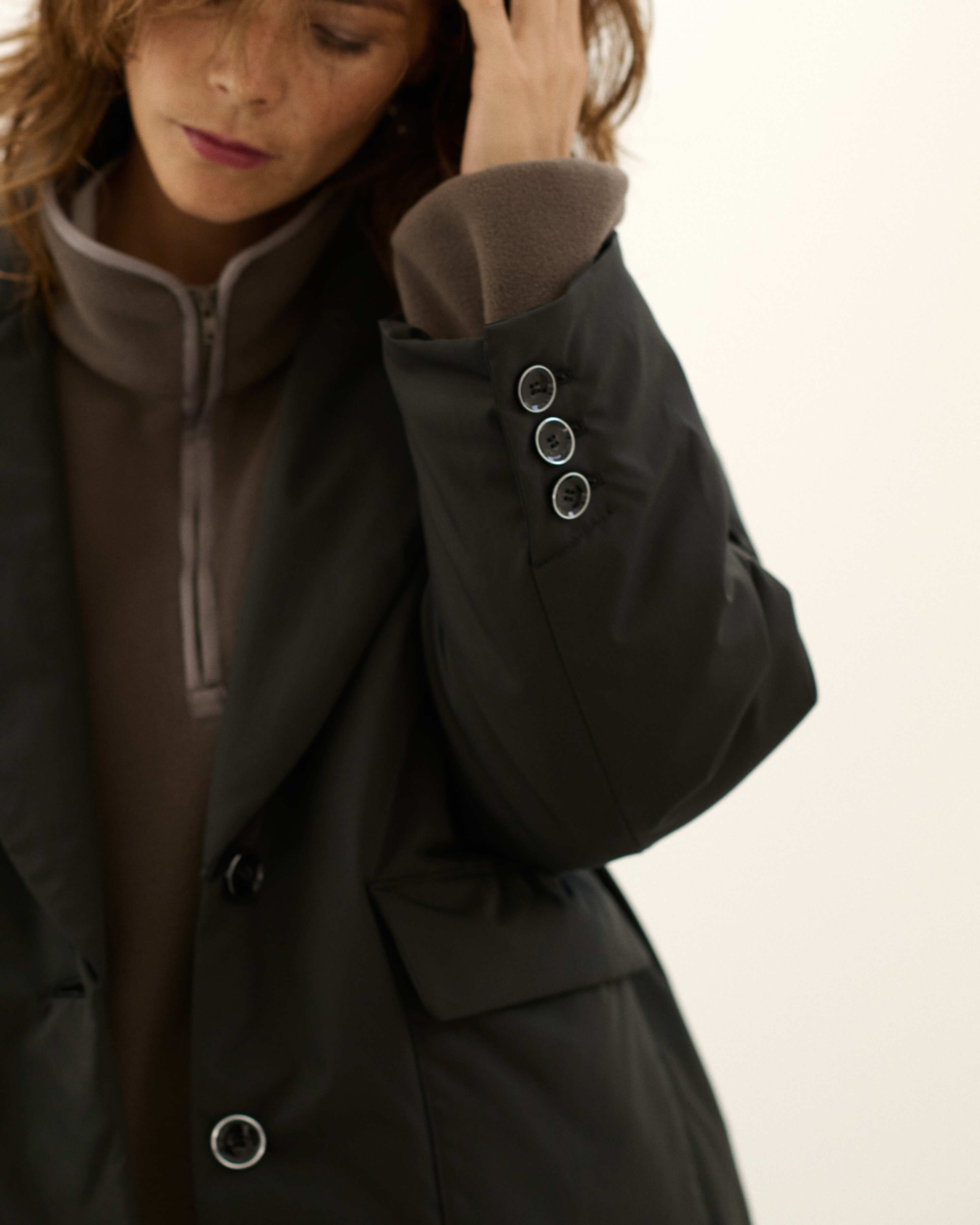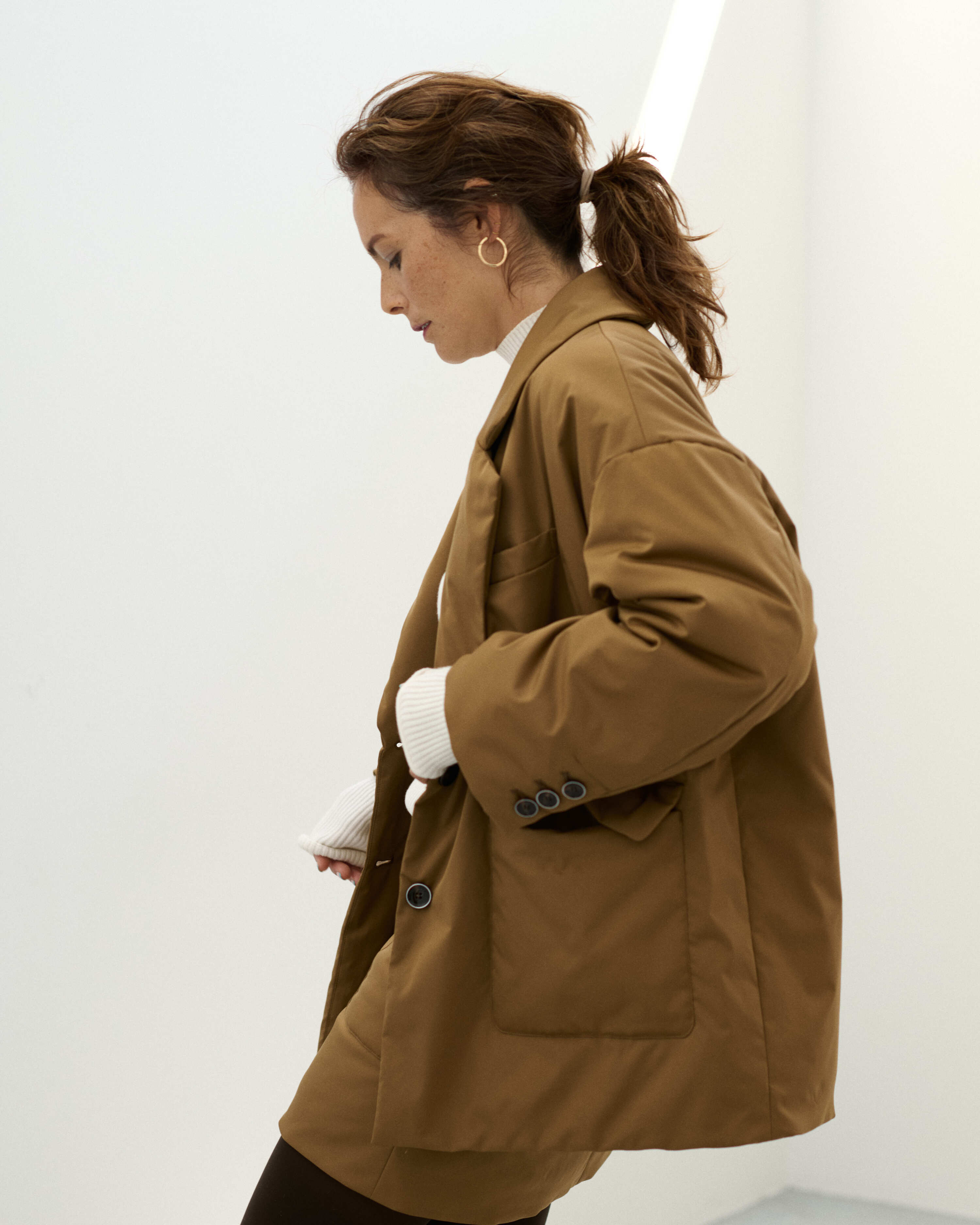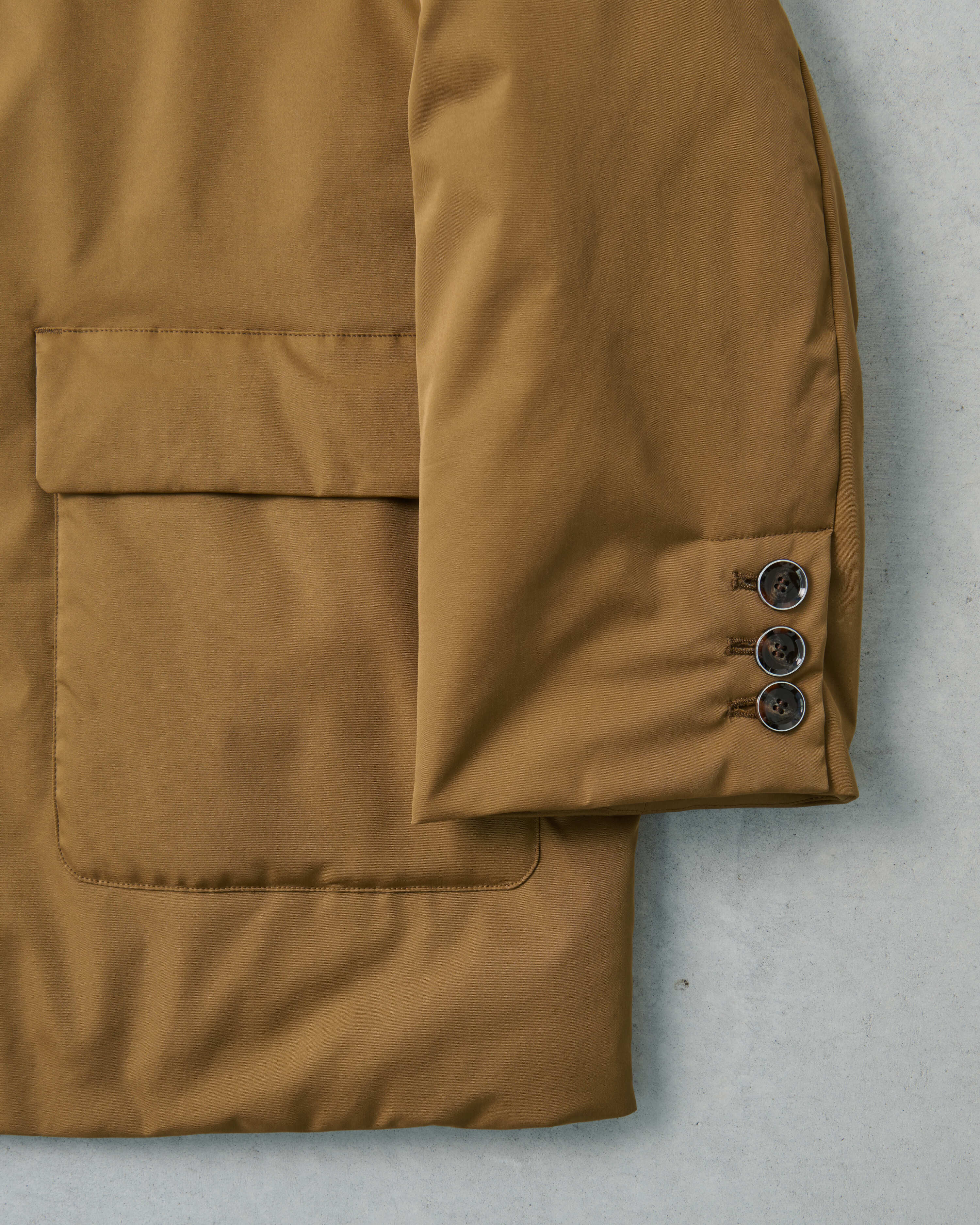 パデットブルゾンの手軽さはそのままに、ジャケットのきちんと感も併せ持つ中綿入りのアウター・CLAVER JACKET。昨年の発売時に即完売し、数回の再販を経ても、未だお問合せの絶えない大人気アイテムが新色を従え、待望のカムバックを果たします。イタリアのリモンタ社のユニークな生地は、マットなポリエステル地ながらナチュラルなストレッチ性もあり着やすさ抜群。撥水、防風、透湿という高機能性を備え、また、驚くほどの軽さも特筆すべきポイント。デイリーな使いやすさが魅力です。ハイテクな生地に対して、デザインは丸みと柔らかさのあるシルエット。ヒップが隠れるオーバーサイズなので、ショートコート感覚で着ていただけます。また、ボタンには縁にメタルのアクセントが。ぜひ同シリーズのCLAVER SKIRTとセットアップで楽しんで。