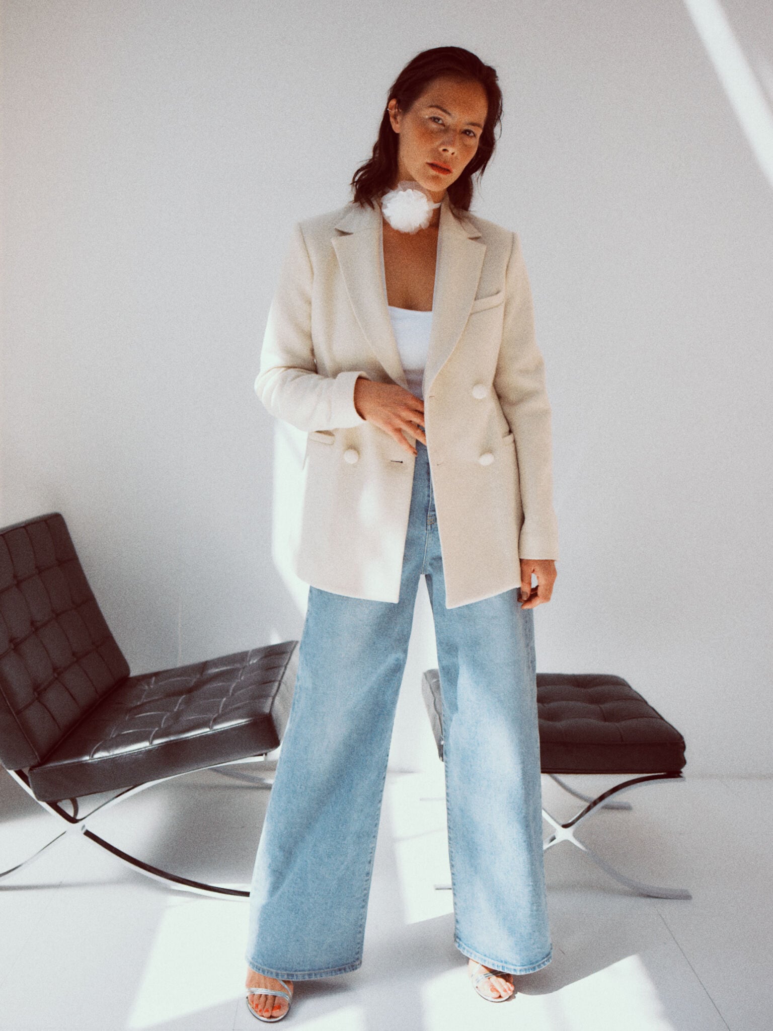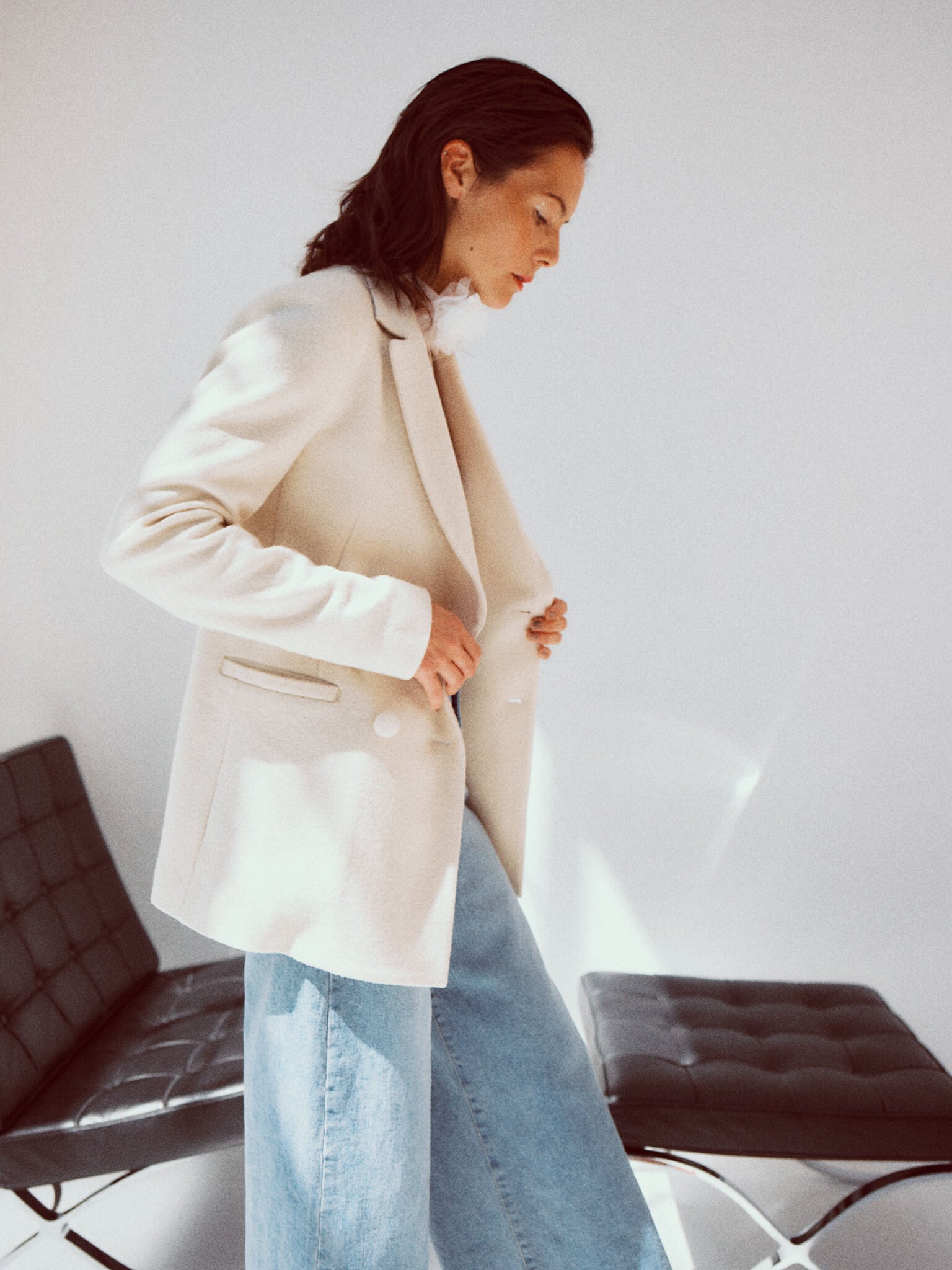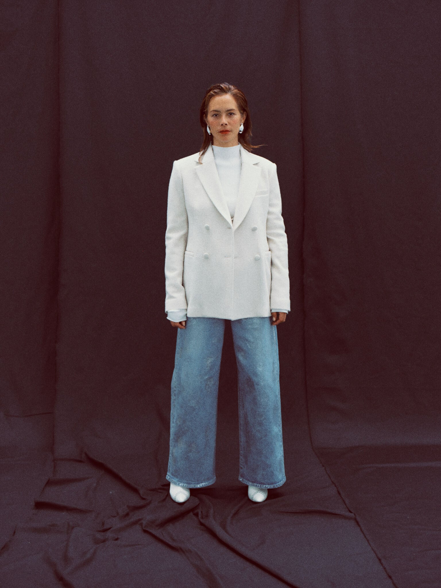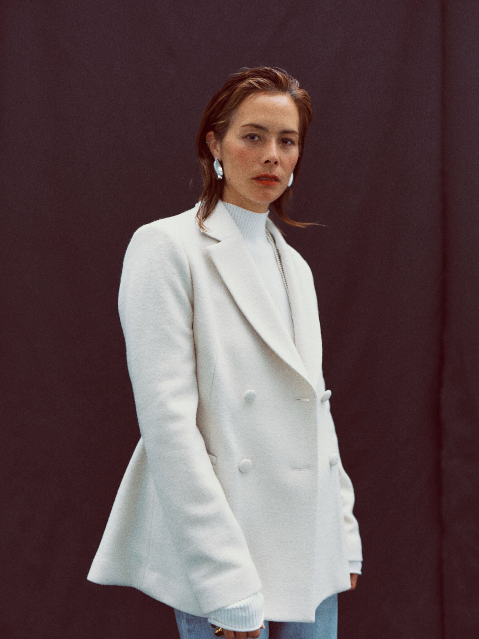 フェミニンなシルエットが魅力のジャケット・VARENNA JACKET。クラシカルなムードの中に、凛とした印象を感じさせます。きちんと感がありながら、生地は圧縮したブークレー糸を使ったジャージー。もこもこした風合いが可愛らしく、とても軽いのが特徴です。シルエットはウエストのシェイプラインを高く設定し、ボディラインを美しく見せるカーヴィーな形に。共布のくるみボタンを留めると、ウエストから裾にかけてドレスのようなドレープがとても綺麗。バックスタイルも様になります。カラーは鮮やかなヴァイオレットと、柔らかなアイボリーの2色をご用意。気軽に心地よく羽織れ、スタイルを一枚で決めてくれるアイテムです。