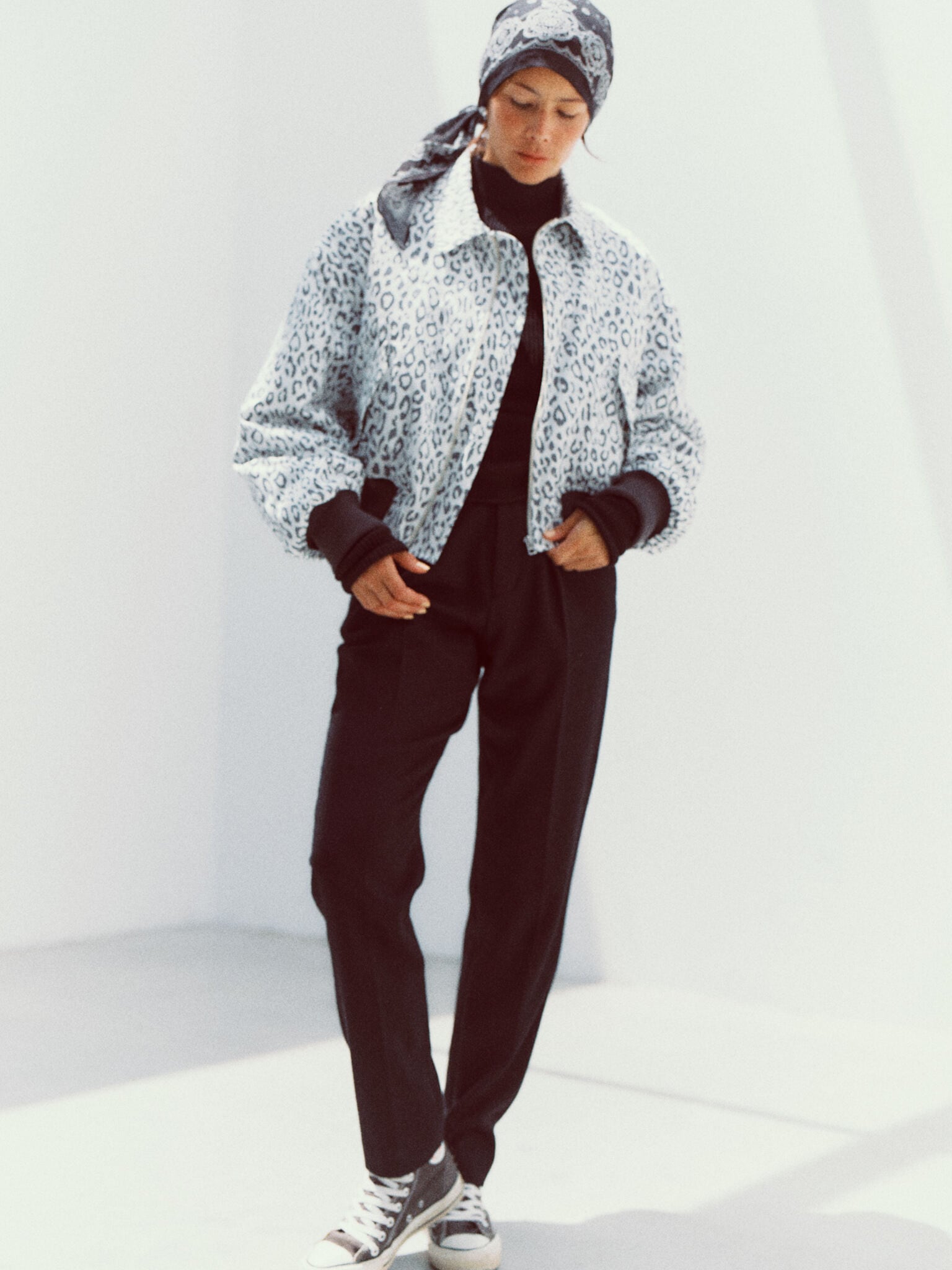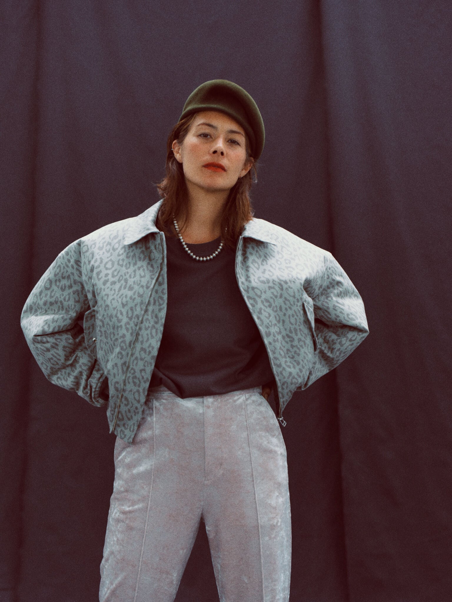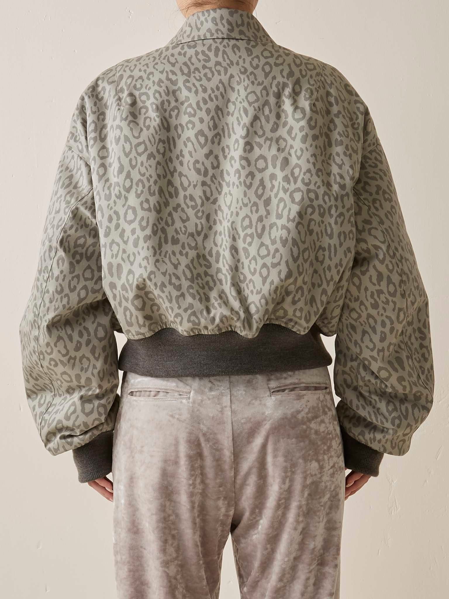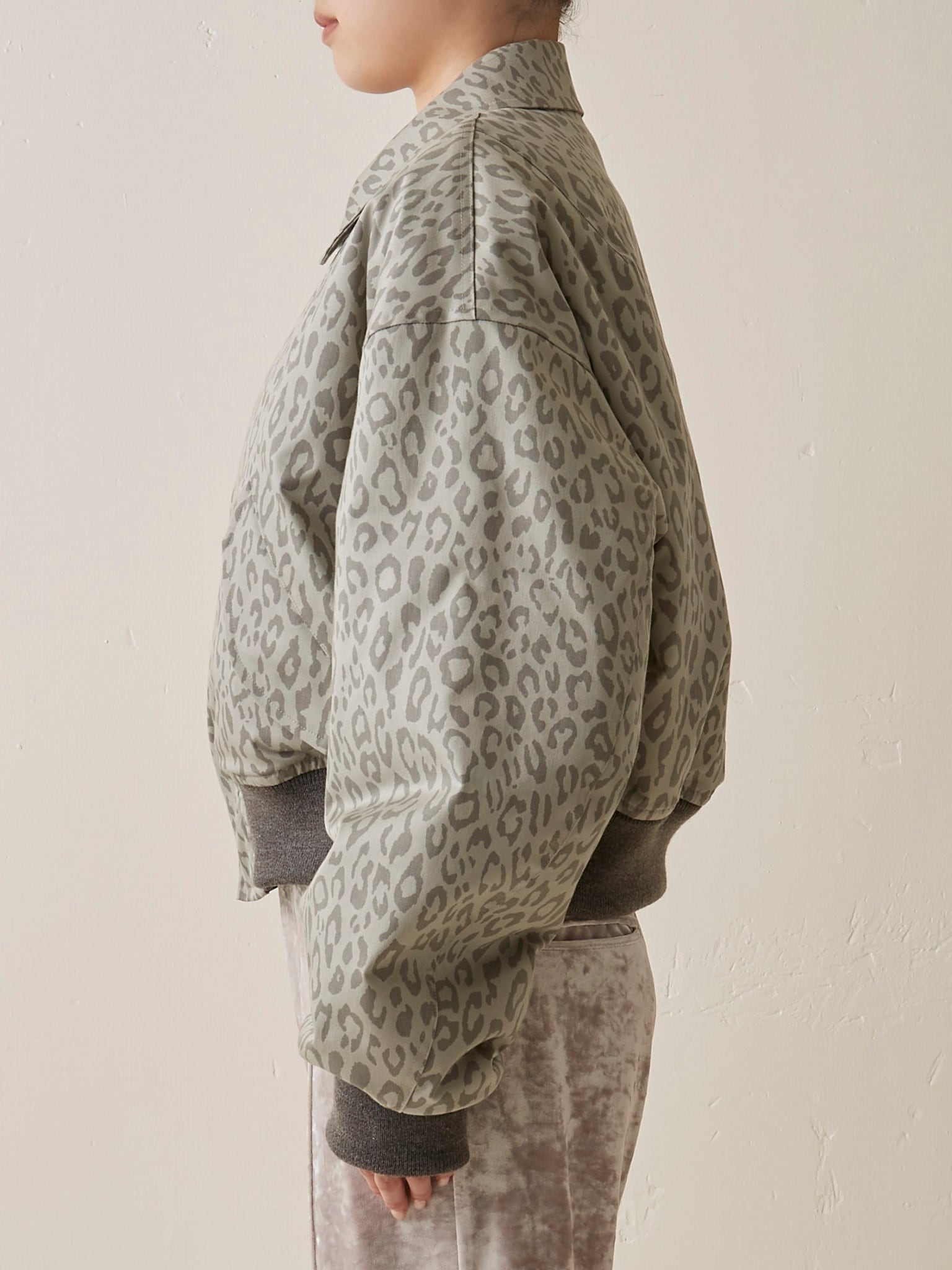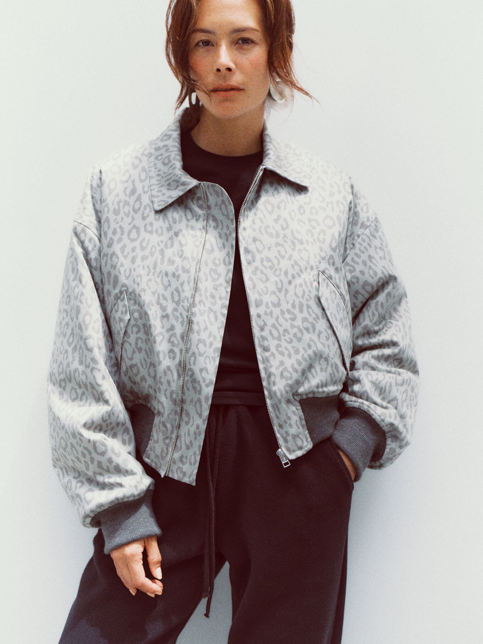これからの時期の人気アイテム・ボンバージャケットを、レオパード×モノトーンの大人仕様にアップデート。ユニークなハリ感のある生地は、コットンポリエステルのストレッチツイル。中綿をたっぷり詰め込み、パフィーなシルエットに仕立てました。ワイドなサイズ感でストレスフリーな着心地ながら、丈はコンパクトなので合わせるボトムを選びません。TNH MILTON JEANのようなデニムはもちろん、 LOHMAN PANTのようなクリーンなパンツにもマッチ。フェミニンなスカートとの相性もGOOD。着たときの丸みのあるシルエットと、長めのスリーブが垢抜けて見えるポイントです。肌寒い季節から、本格的なウィンターシーズンまで大活躍してくれること間違いなしの、頼れるアウターです。
