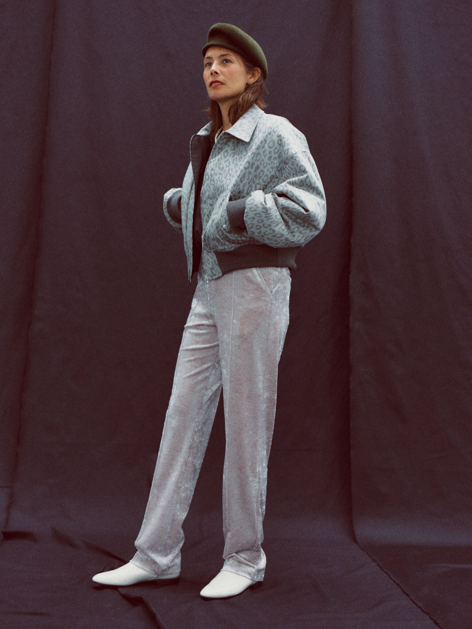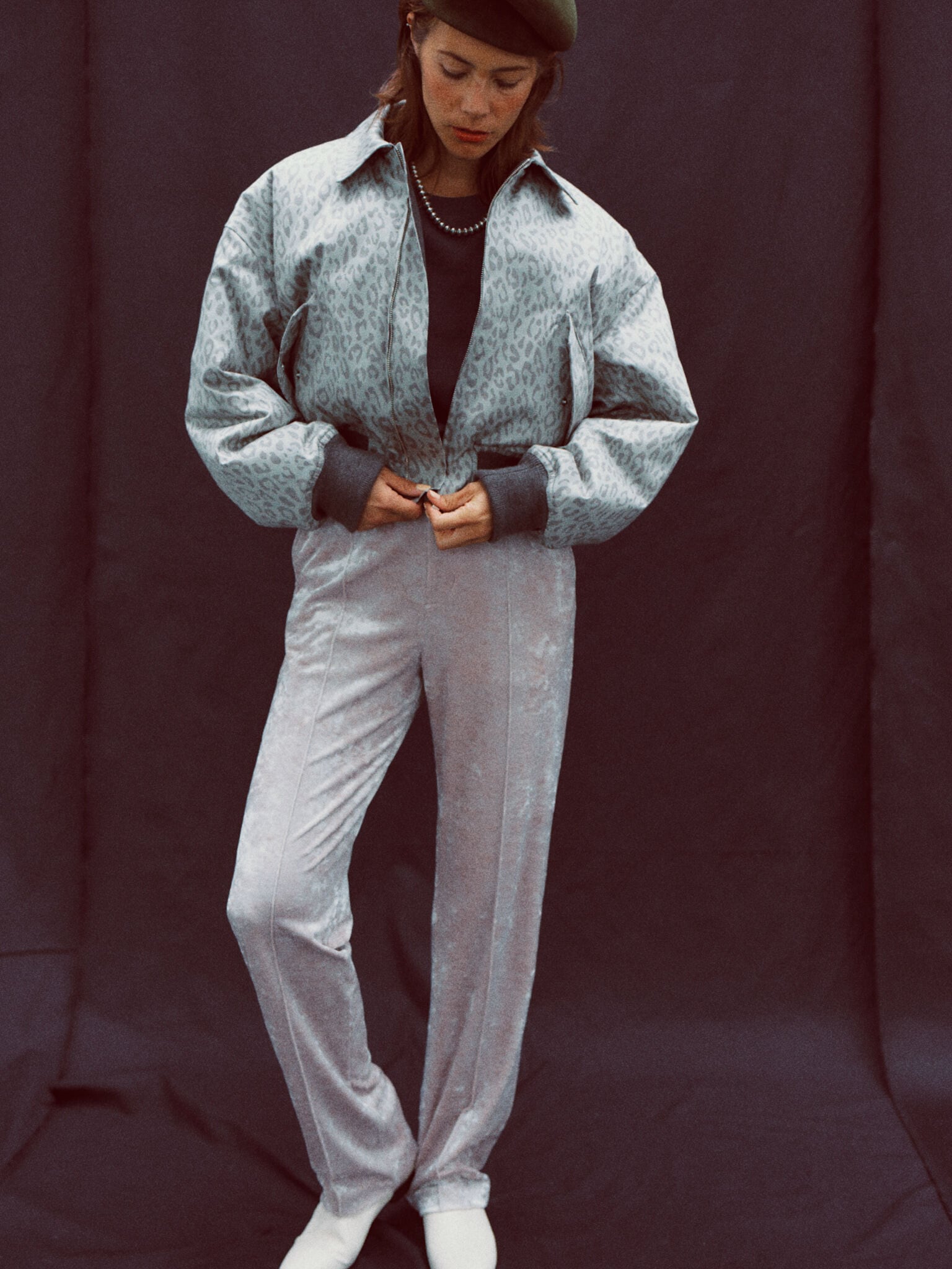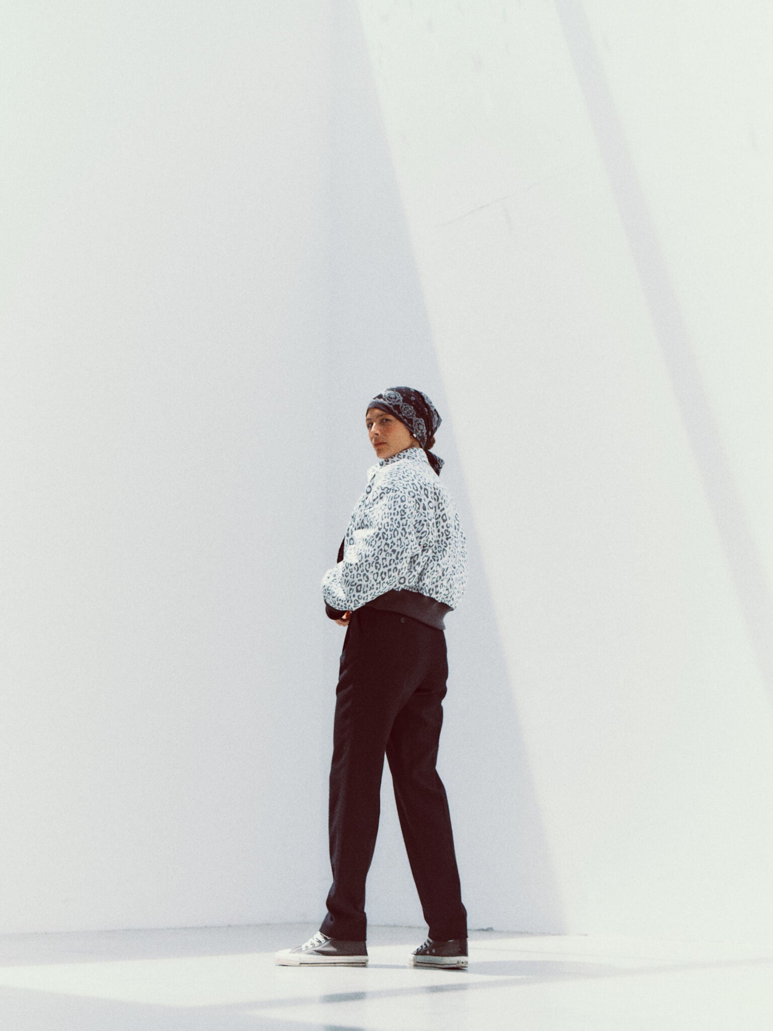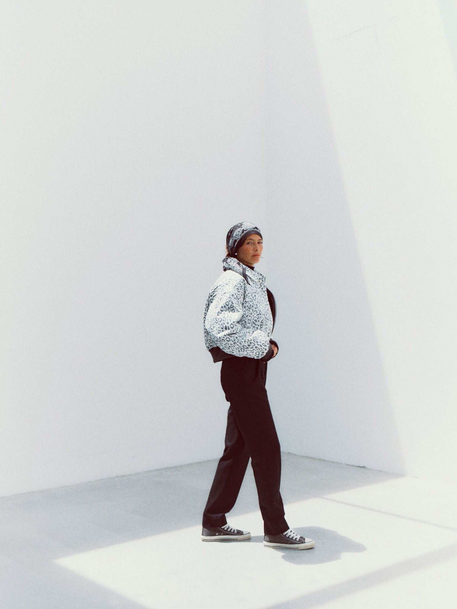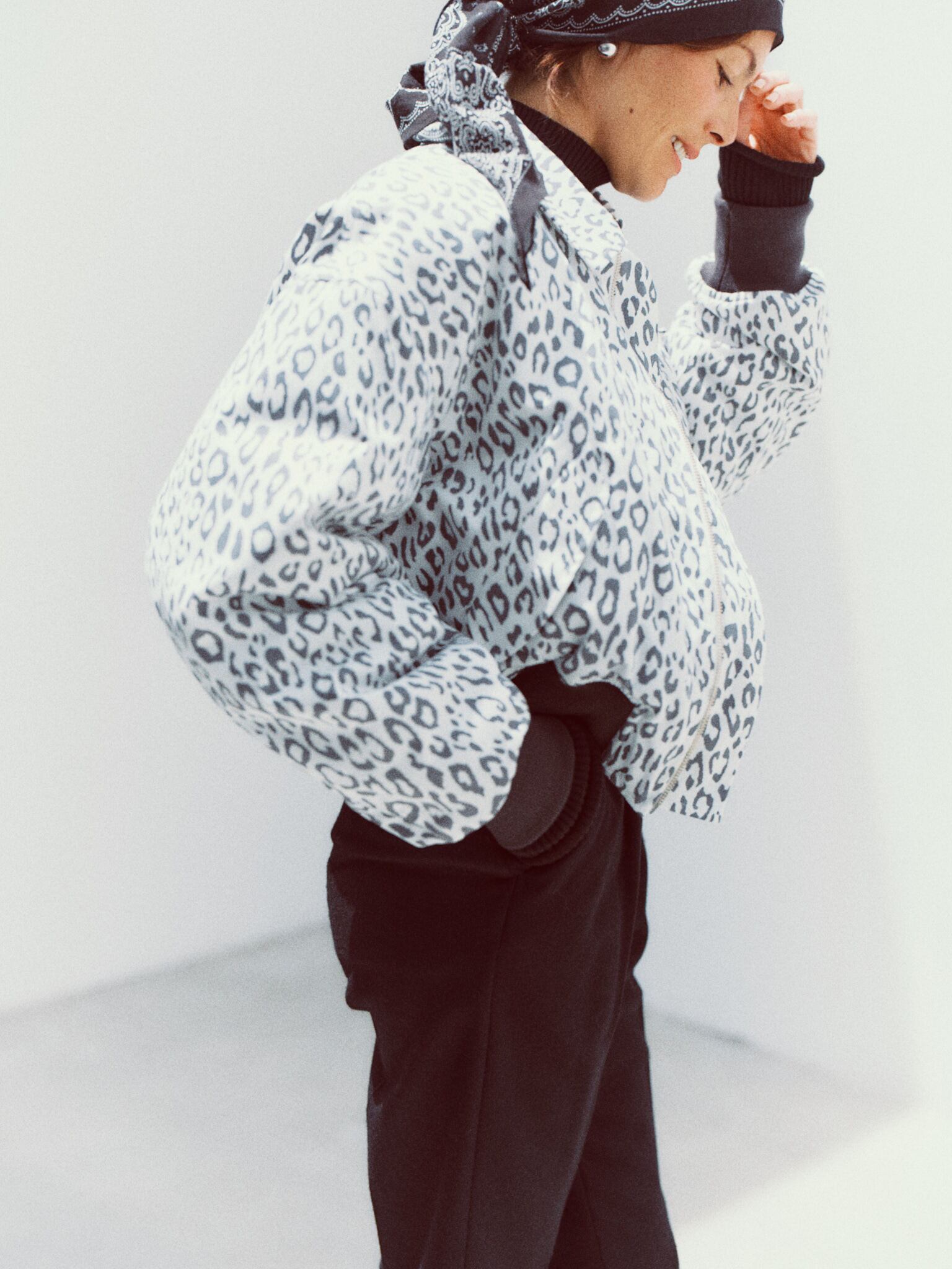 これからの時期の人気アイテム・ボンバージャケットを、レオパード×モノトーンの大人仕様にアップデート。ユニークなハリ感のある生地は、コットンポリエステルのストレッチツイル。中綿をたっぷり詰め込み、パフィーなシルエットに仕立てました。ワイドなサイズ感でストレスフリーな着心地ながら、丈はコンパクトなので合わせるボトムを選びません。TNH MILTON JEANのようなデニムはもちろん、 LOHMAN PANTのようなクリーンなパンツにもマッチ。フェミニンなスカートとの相性もGOOD。着たときの丸みのあるシルエットと、長めのスリーブが垢抜けて見えるポイントです。肌寒い季節から、本格的なウィンターシーズンまで大活躍してくれること間違いなしの、頼れるアウターです。